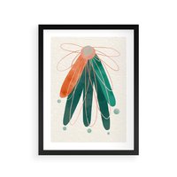 Plakat w ramie 40x50 - Oryginalny obraz abstrakcyjny w nowoczesnym stylu. Geometryczne akwarelowe kształty w intensywnych odcieniach zieleni i pomarańczu. Doskonała dekoracja dla miłośników sztuki.