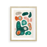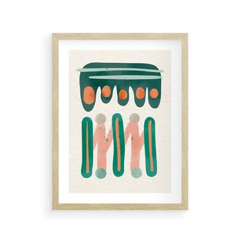 Plakat w ramie 40x50 - Oryginalny obraz abstrakcyjny w nowoczesnym stylu. Geometryczne akwarelowe kształty w intensywnych odcieniach zieleni i pomarańczu. Doskonała dekoracja dla miłośników sztuki.