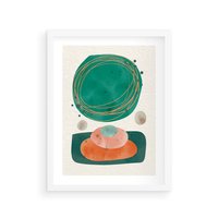 Plakat w ramie 40x50 - Oryginalny obraz abstrakcyjny w nowoczesnym stylu. Geometryczne akwarelowe kształty w intensywnych odcieniach zieleni i pomarańczu. Doskonała dekoracja dla miłośników sztuki.
