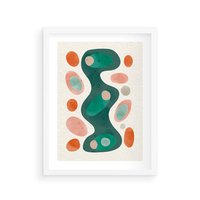 Plakat w ramie 40x50 - Oryginalny obraz abstrakcyjny w nowoczesnym stylu. Geometryczne akwarelowe kształty w intensywnych odcieniach zieleni i pomarańczu. Doskonała dekoracja dla miłośników sztuki.