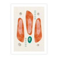Plakat bez ramy 50x70 - Oryginalny obraz abstrakcyjny w nowoczesnym stylu. Geometryczne akwarelowe kształty w intensywnych odcieniach zieleni i pomarańczu. Doskonała dekoracja dla miłośników sztuki.
