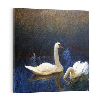 Obraz na płótnie 60x60 - "Łabędzie w trzcinach" (1907) Bruno Liljefors - Reprodukcja