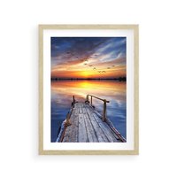 Plakat w ramie 30x40 - Zachód nad jeziorem z pomostem