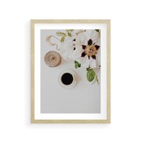 Plakat w ramie 50x70 - Bukiet Kwiatów i Kawa na Stole