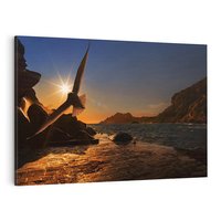 Obraz na płótnie 100x70 - Zachód słońca nad morzem z mewą