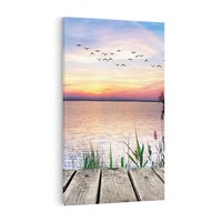 Obraz na płótnie 50x70 - Romantyczny zachód słońca nad morzem z ptakami