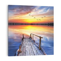 Obraz na płótnie 40x40 - Zachód nad jeziorem z pomostem