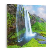 Obraz na płótnie 50x50 - Zachód słońca nad islandzkim wodospadem