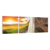 Obraz na płótnie 90x30 - Zachód słońca nad islandzkim wodospadem