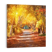 Obraz na płótnie 40x40 - Jesienna Droga: Przechadzka wśród Drzew