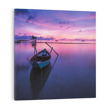 Obraz na płótnie 40x40 - Łódka i zachód słońca nad morzem