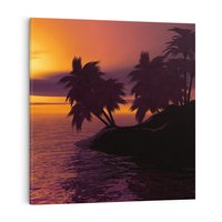 Obraz na płótnie 70x70 - Zachód słońca - Palmy nad morzem
