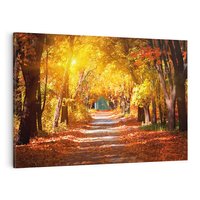 Obraz na płótnie 100x70 - Jesienna Droga: Przechadzka wśród Drzew