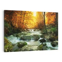 Obraz na płótnie 100x70 - Siła Natury: Strumień w Lesie