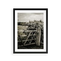 Plakat w ramie 40x50 - Wiejski Urok: Stary Płot i Kwitnący Krzew