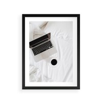 Plakat w ramie 40x50 - Relaks w Łóżku: Kawa i Laptop w Pościeli