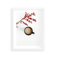 Plakat w ramie 40x50 - Filiżanka Kawy z Gałązką Jarzębiny