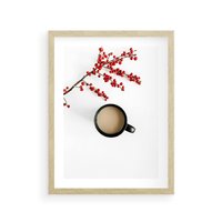 Plakat w ramie 50x70 - Filiżanka Kawy z Gałązką Jarzębiny