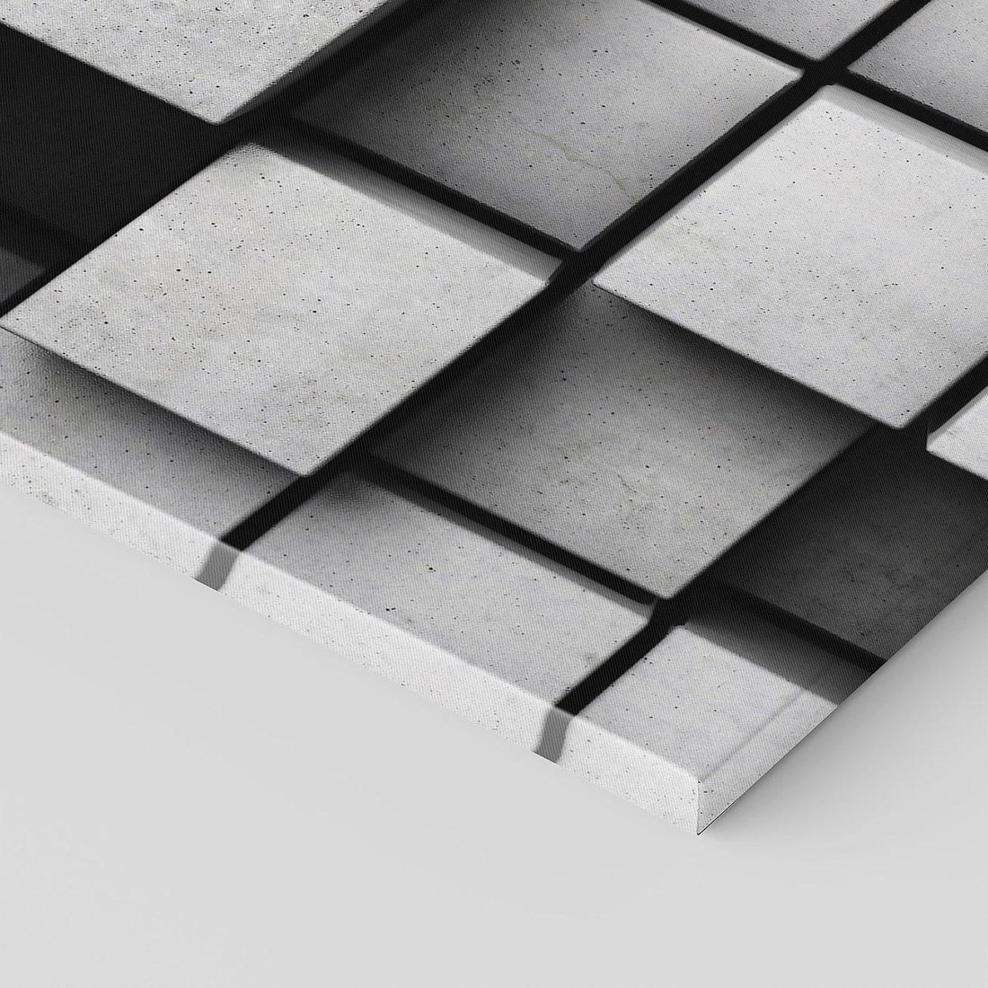 Ten nowoczesny obraz na płótnie łączy trójwymiarową abstrakcję z geometrycznymi kwadratami. Jego dynamiczne kompozycje, kontrasty kolorów i głębia przestrzeni dodają nowoczesnego stylu i wyrazistości do Twojego wnętrza.