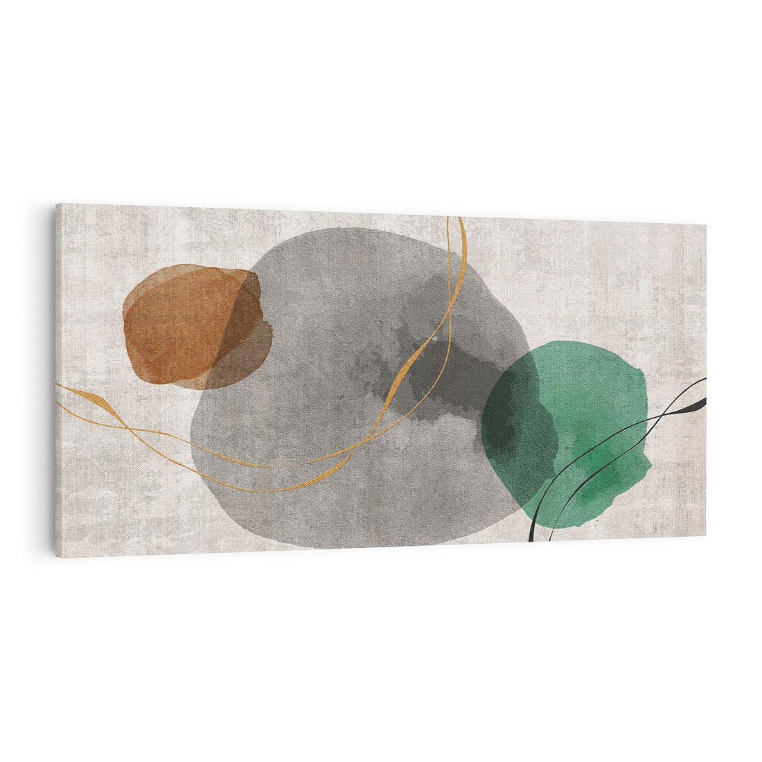 Obraz na płótnie 100x50 - Delikatne Plamy - akwarelowe plamy, złote linie