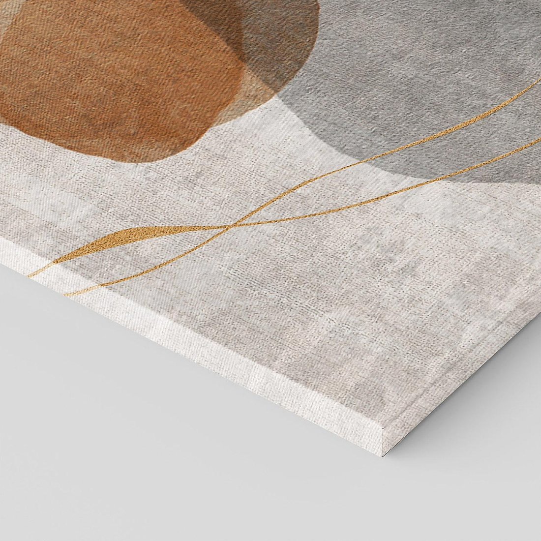 To malowidło akwarelowe prezentuje złote linie w połączeniu z subtelnymi plamami w odcieniach beżów i szarości. Jego nowoczesna estetyka pasuje do salonu, sypialni lub biura, dodając elegancji i spokoju.