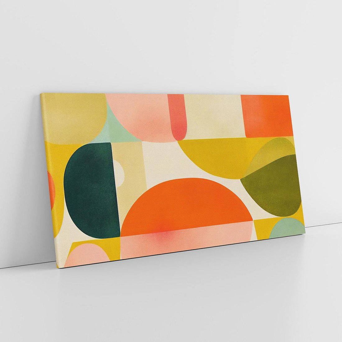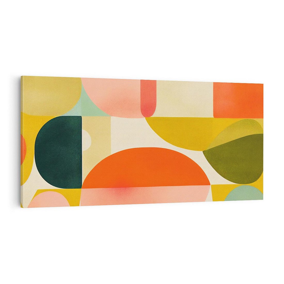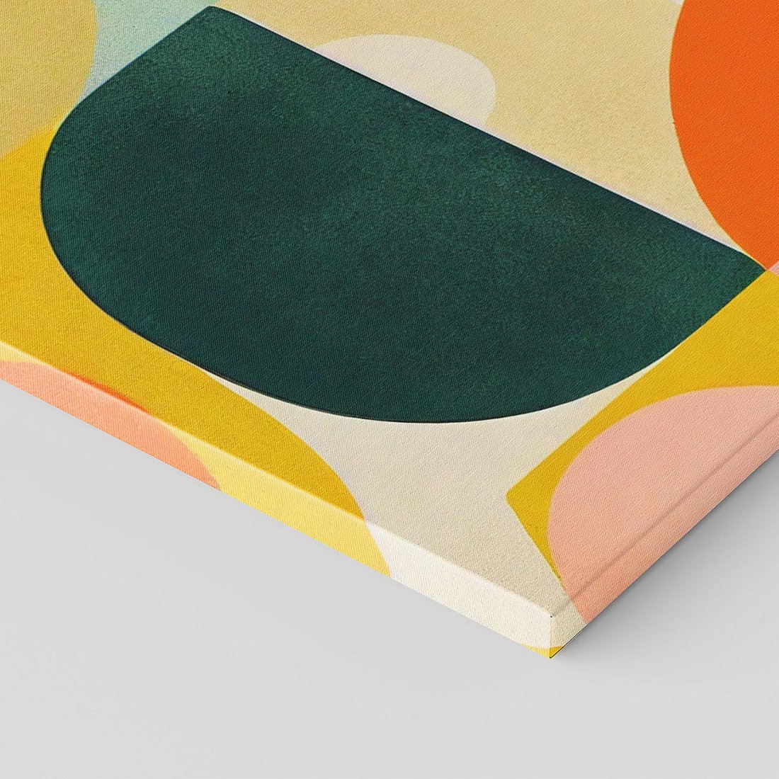 Ten wesoły obraz ożywia przestrzeń eklektycznego wnętrza za pomocą geometrycznych, kolorowych kształtów. Eksplozja pozytywnych kolorów przynosi radość i dodaje energii każdemu pomieszczeniu. Emanuje pozytywnym nastawieniem, a harmonijna gra kolorów podkreśla jego wyjątkowość. Idealny sposób na wyrażenie Twojej kreatywności i radosnego ducha w domowym otoczeniu.
