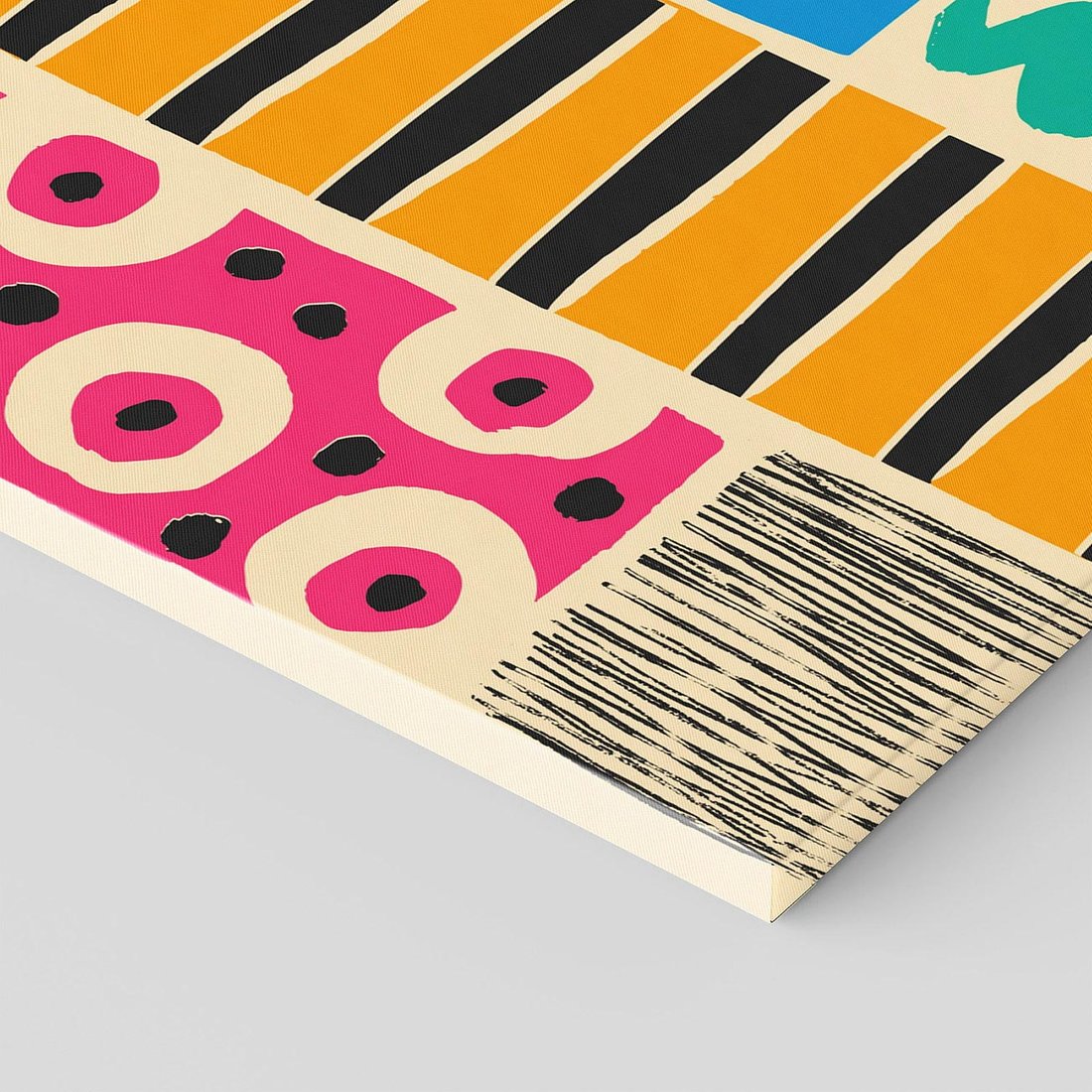 Ten obraz łączy kolorowe etno wzory w stylu boho, tworząc dynamiczną harmonię. Wzory z różnych kultur splecione są na jednym płótnie, odzwierciedlając piękno różnorodności. To podróż przez kulturową mozaikę, która wprowadzi energię i unikalną atmosferę do każdego wnętrza.