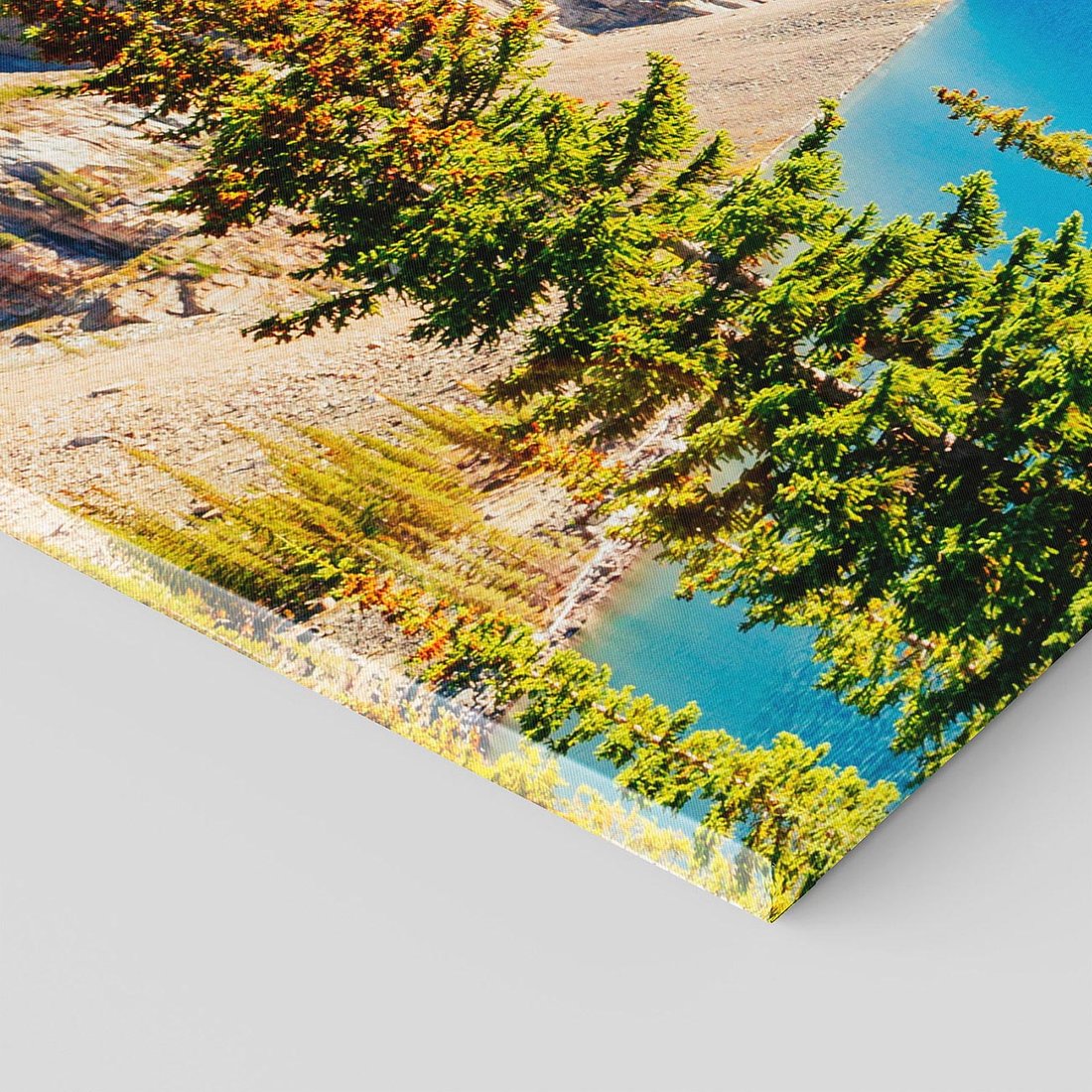 Ożyw swoje wnętrze tym uroczym obrazem przedstawiającym górskie jezioro. Niebieska woda, majestatyczne góry i spokojna atmosfera tworzą harmonijną aurę. Ta kompozycja dodaje świeżości i wyciszenia, idealna dla miłośników przyrody i pragnących wprowadzić naturalną harmonię do swojego wnętrza.