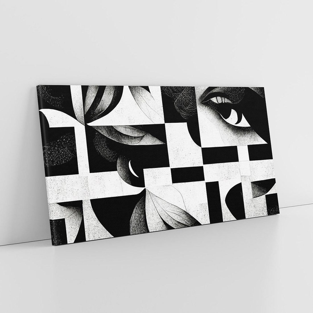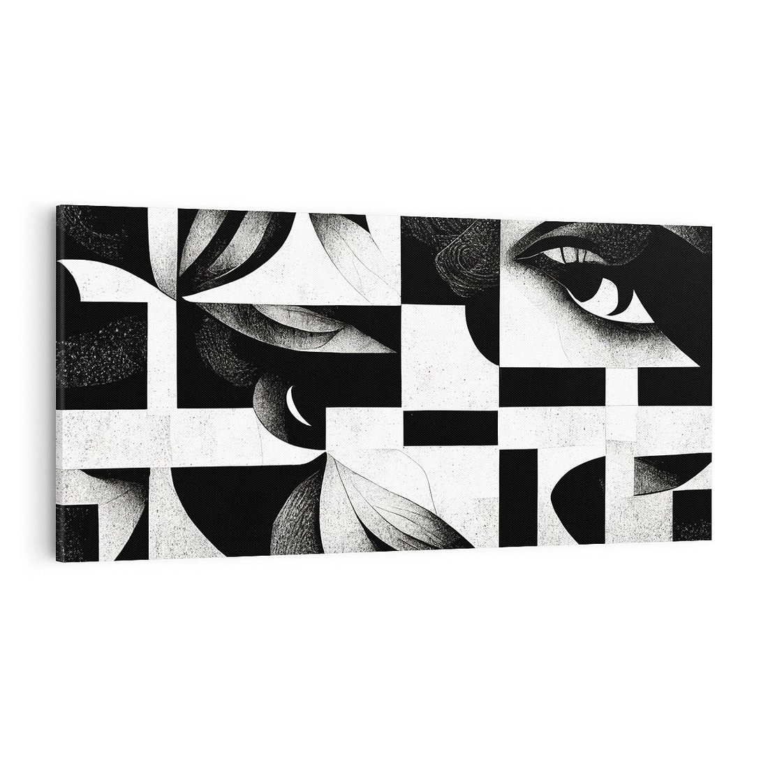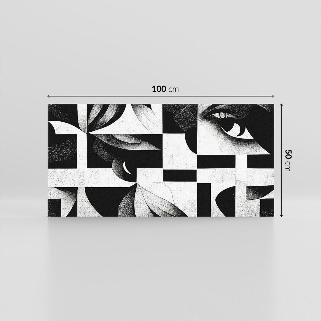 Wzorowana na modernistycznym stylu, abstrakcyjna kompozycja w czerni i bieli przyciąga uwagę. Geometria i elementy roślin tworzą harmonię kontrastów, a ukryte oko dodaje tajemniczości. To dzieło sztuki o loftowym charakterze, które wprowadzi eklektyczny powiew do Twojego wnętrza.