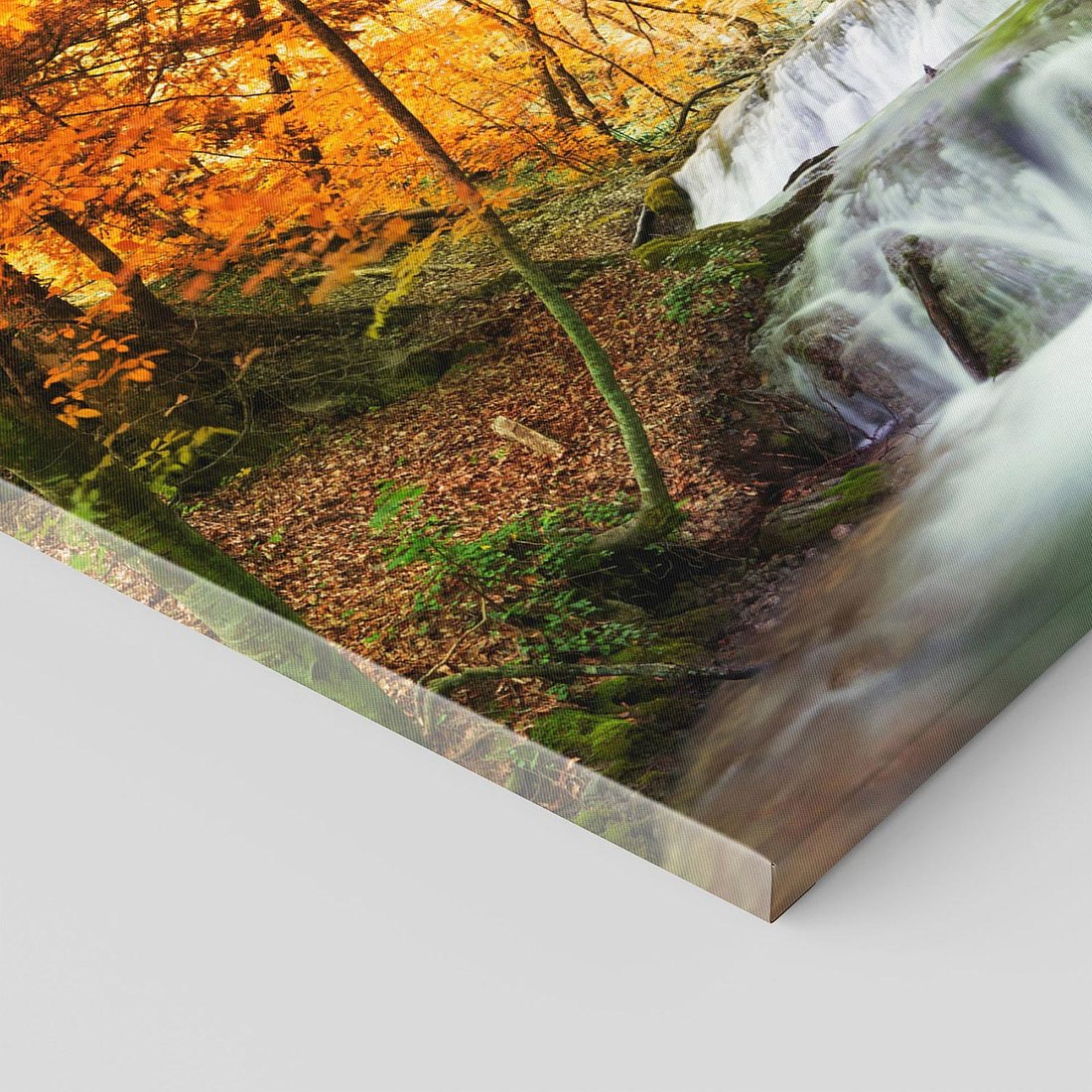 Odkryj urok jesieni w pejzażu leśnym dzięki temu malowniczemu obrazowi przedstawiającemu wodospad. Kolorowe liście, strumień wody i magiczna atmosfera tworzą nastrojowy obraz. Ta kompozycja dodaje przytulności i sezonowego uroku, idealna dla miłośników jesiennych krajobrazów i naturalnej harmonii.