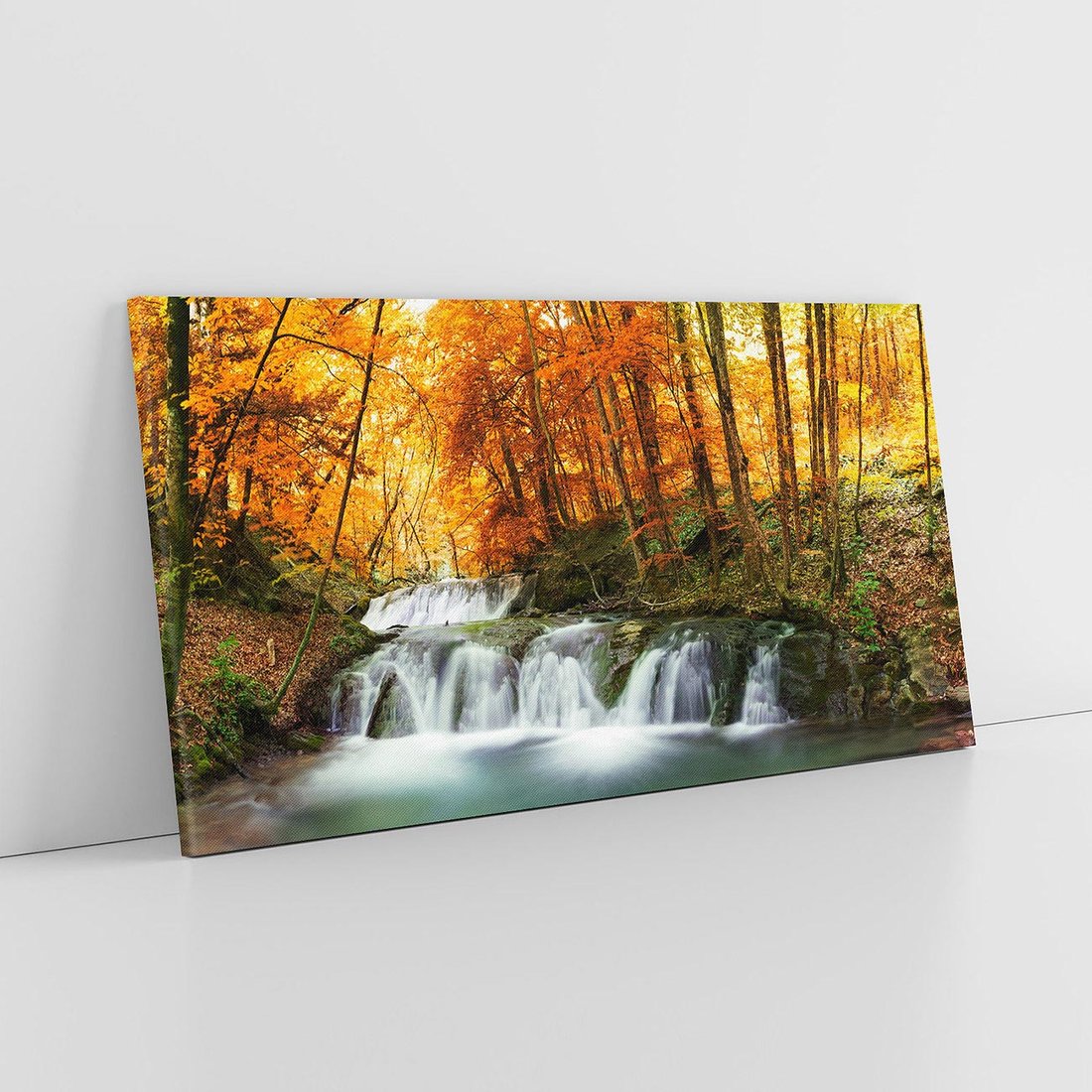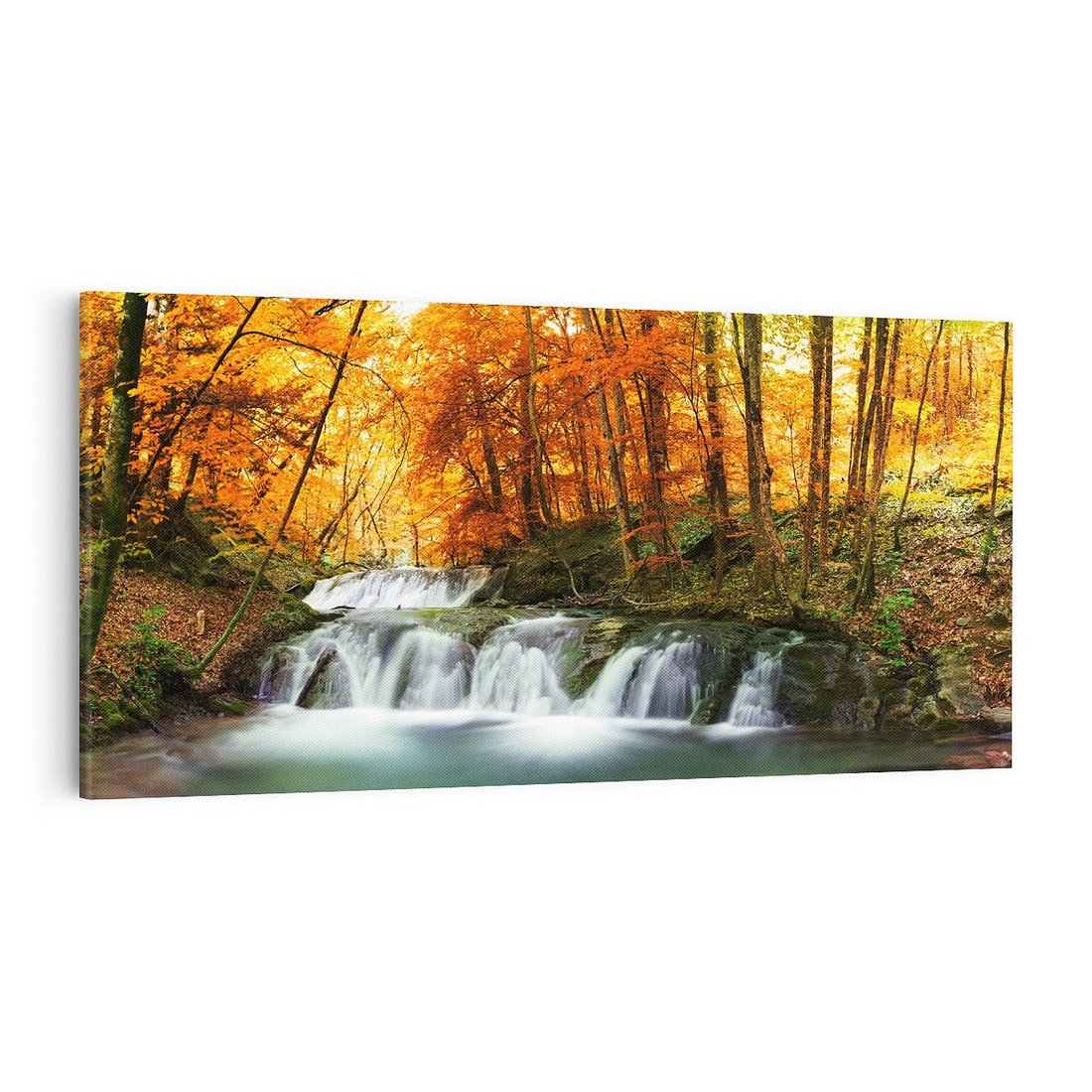 Obraz na płótnie 100x50 - Jesienny wodospad w lesie - jesień, wodospad