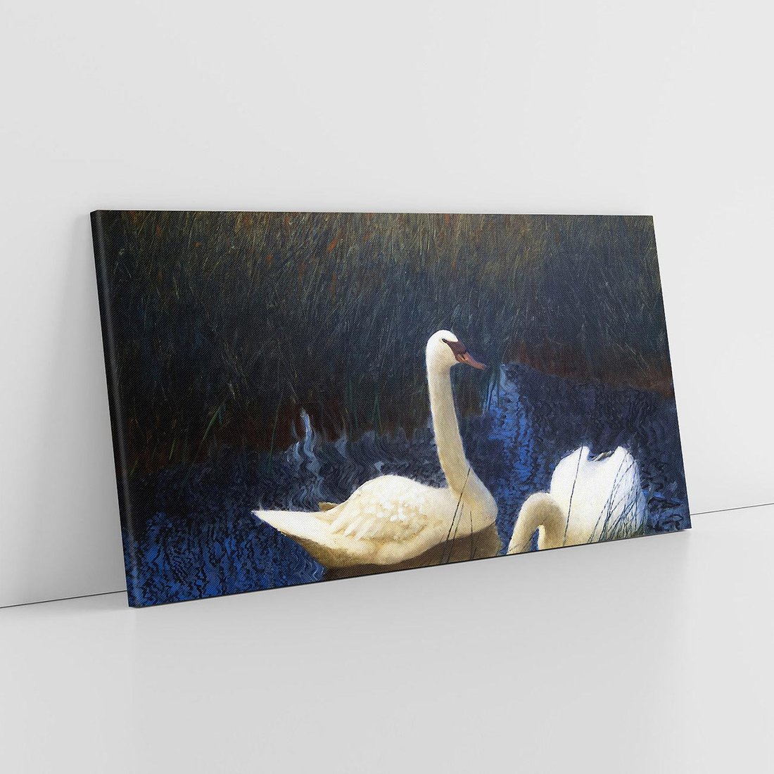 Obraz na płótnie 100x50 - "Łabędzie w trzcinach" (1907) Bruno Liljefors - Reprodukcja - reprodukcja, obraz na płótnie