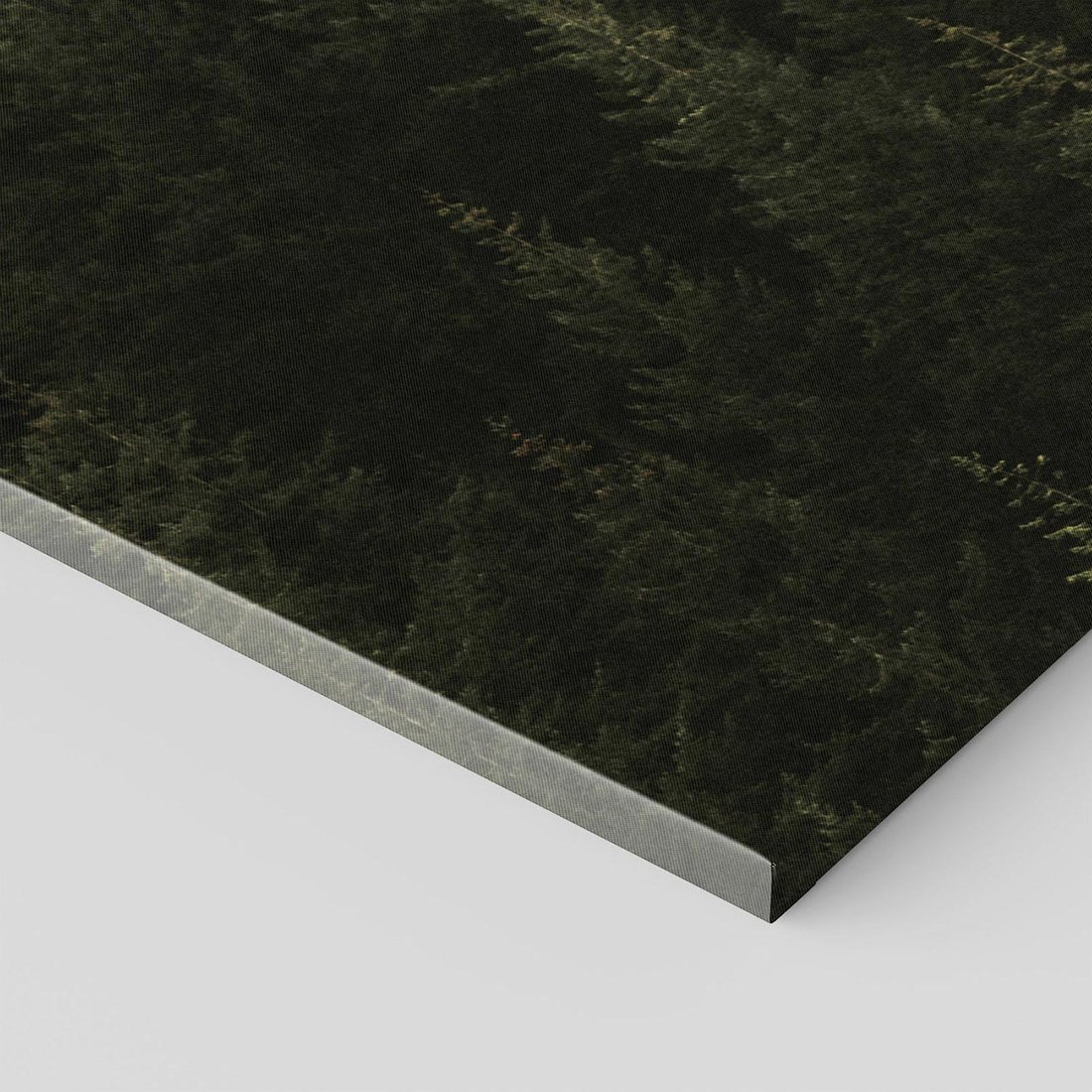 To enigmatyczne dzieło sztuki ukazuje ciemny las iglasty w pełnej okazałości. Jego tajemniczy nastrój i mroczna kolorystyka wprowadzają do wnętrza atmosferę spokoju i refleksji. Stwórz unikalną i zmysłową przestrzeń, dodając ten mistyczny akcent natury.