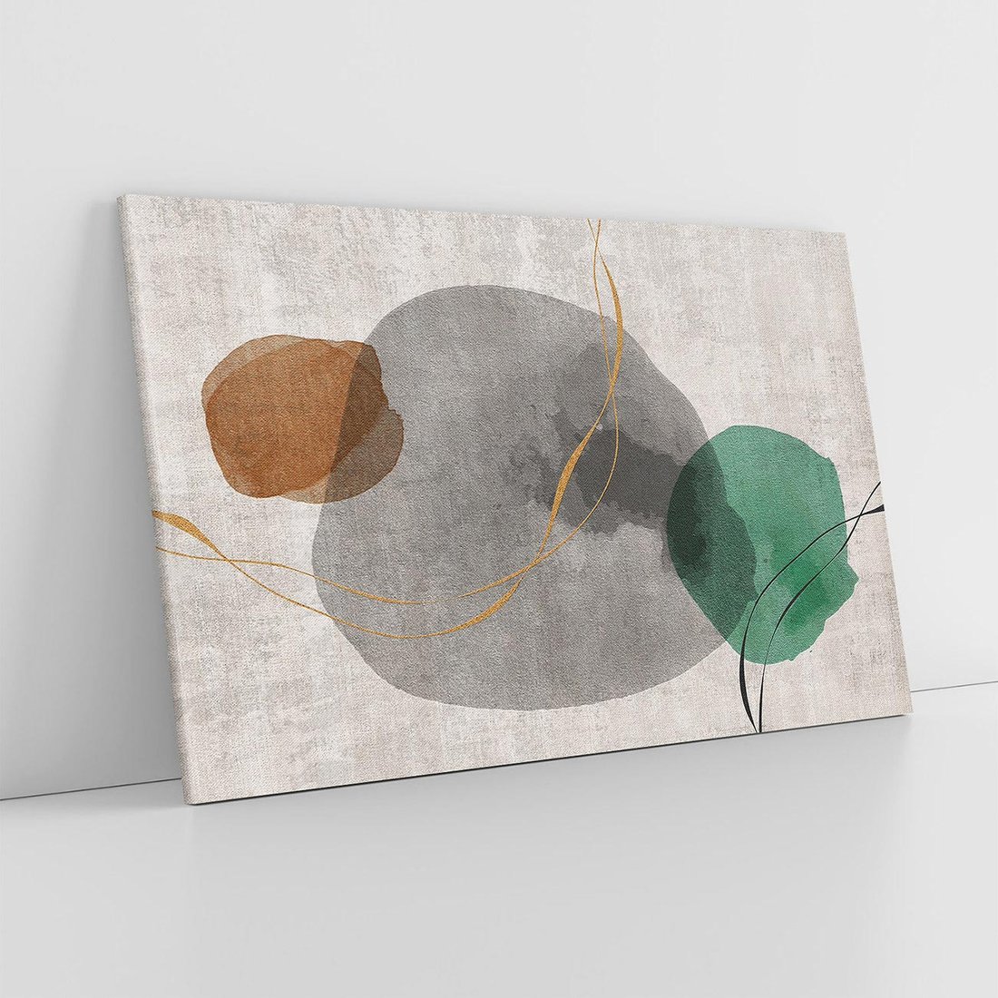 To malowidło akwarelowe prezentuje złote linie w połączeniu z subtelnymi plamami w odcieniach beżów i szarości. Jego nowoczesna estetyka pasuje do salonu, sypialni lub biura, dodając elegancji i spokoju.