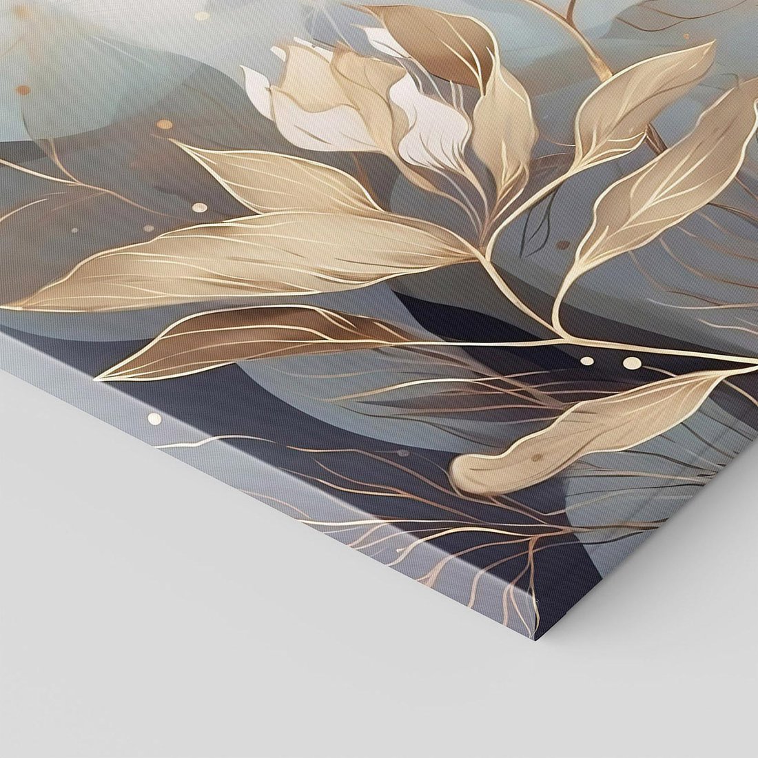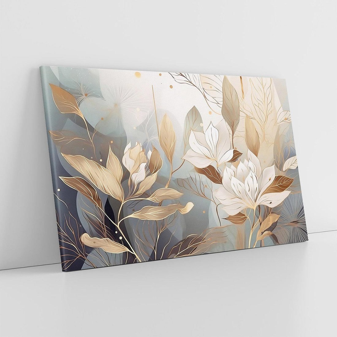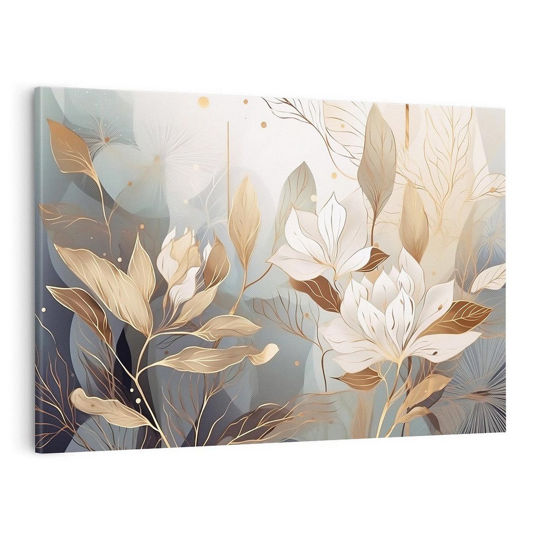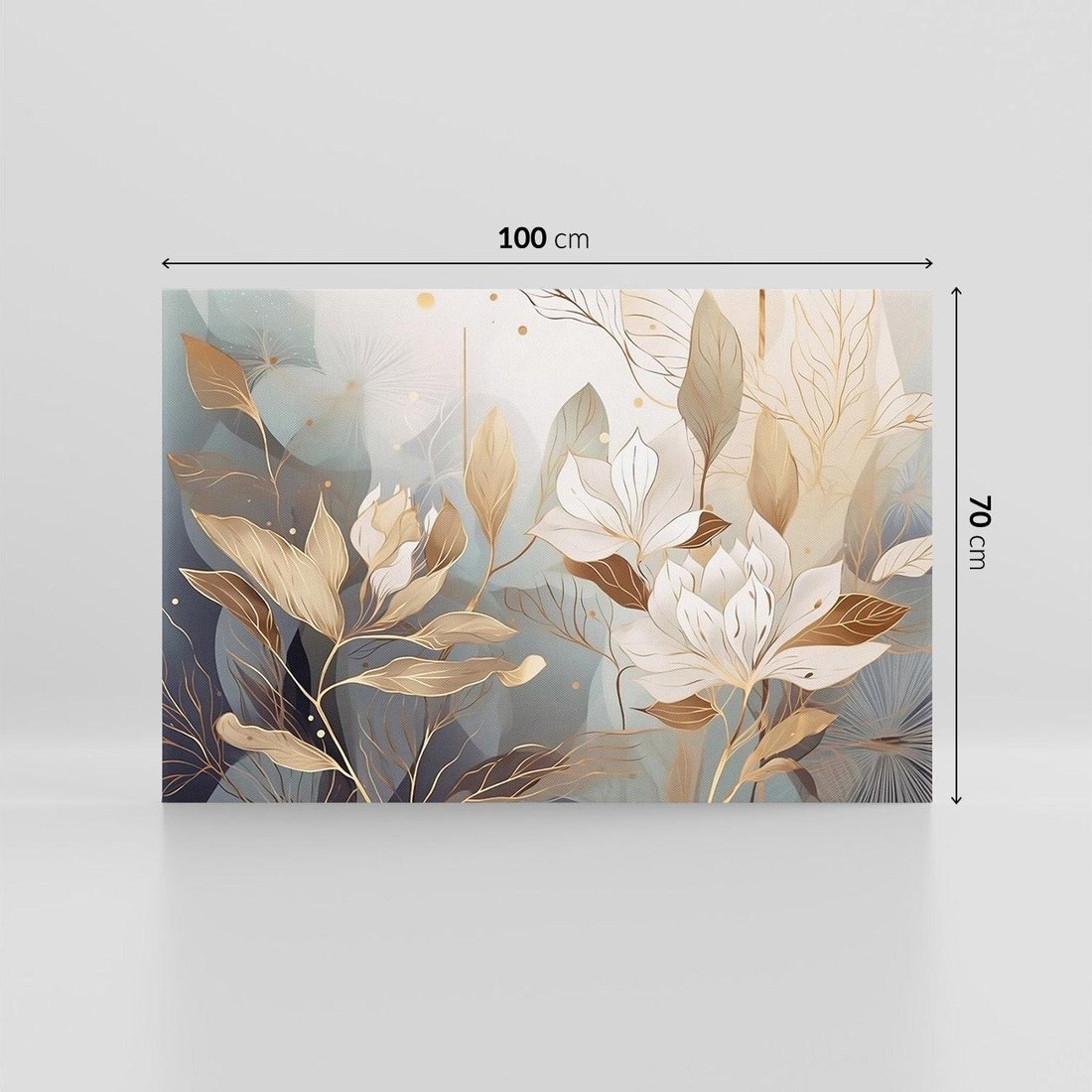 Ta nowoczesna grafika przedstawia złote kwiaty, które rozkwitają w blasku światła. Ich piękno i elegancja doskonale pasują do wnętrz glamour, dodając im wyjątkowego charakteru. To artystyczne dzieło sztuki wprowadza luksusowy akcent do Twojego wnętrza, zachwycając oryginalnością i złotym blaskiem.