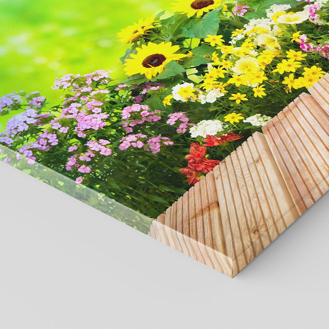 Przywołaj piękno kwiatowego ogrodu dzięki temu urzekającemu obrazowi przedstawiającemu kolorową harmonię kwiatów. Soczyste kolory, różnorodność kwiatów i bujna roślinność tworzą niesamowity klimat. Ten obraz dodaje radości i energii, idealny dla miłośników kwiatów, natury i pełni życia.