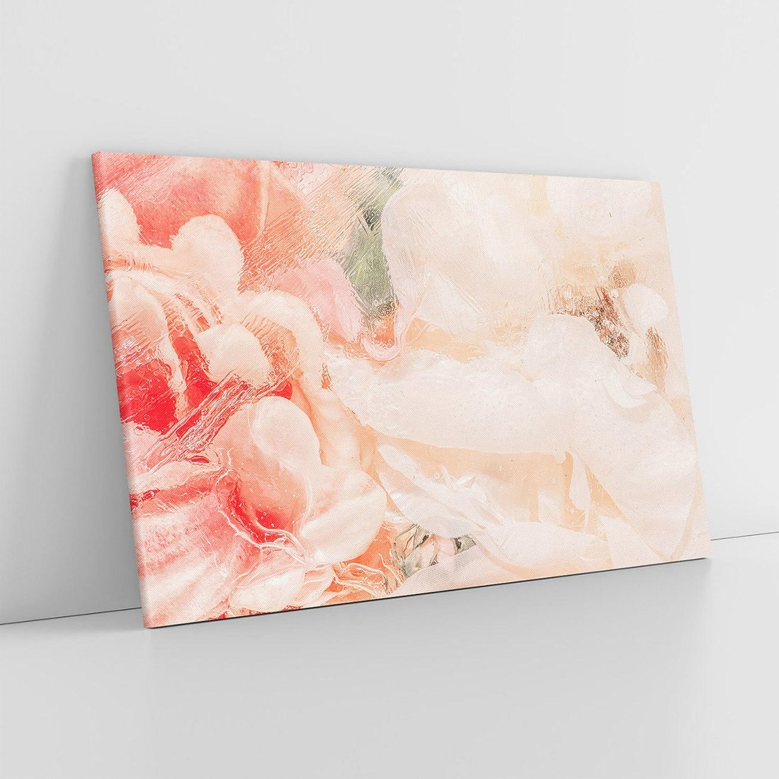 To wyjątkowa abstrakcja, która subtelnie przywodzi na myśl piękno kwiatów, zwłaszcza róż. Pudrowe kolory harmonijnie się splatają, tworząc spokojny i elegancki klimat. To dzieło sztuki emanuje delikatnością i wyrafinowanym wdziękiem, idealnie wpisując się w przestrzenie, gdzie poszukiwany jest luksusowy akcent i oddech glamour.