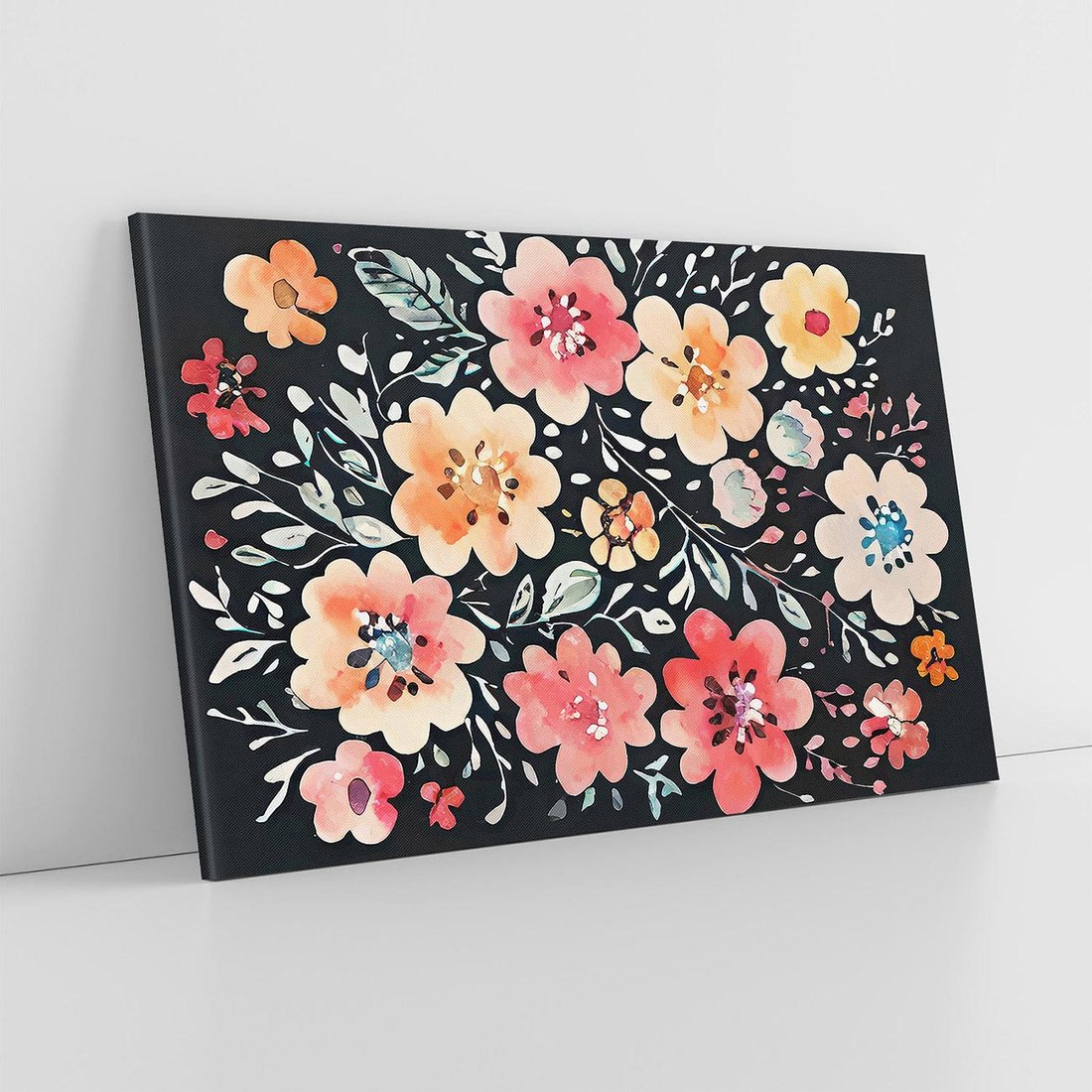 Obraz na płótnie 100x70 - Labirynty melancholii - akwarelowe, pastelowe kwiaty na czarnym tle