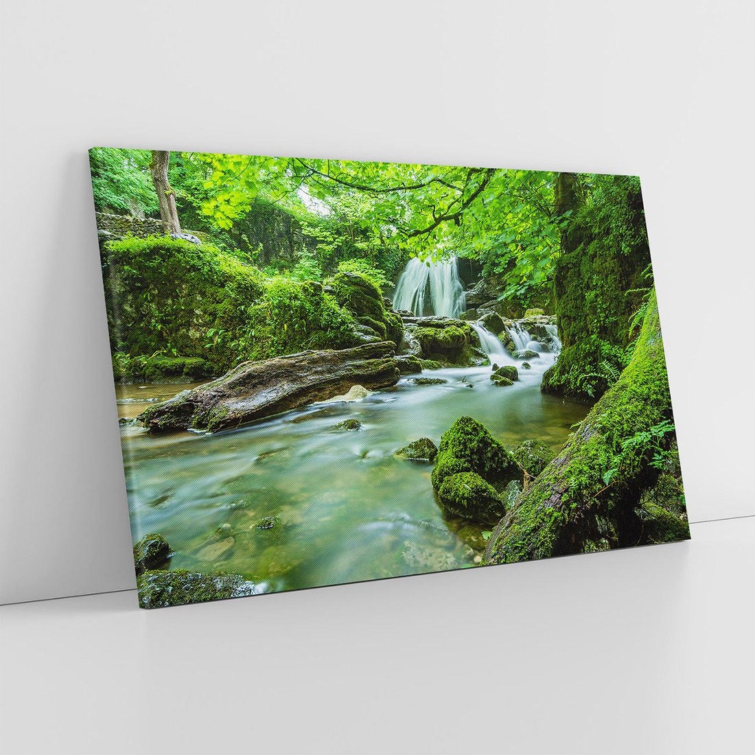 Odkryj siłę przyrody dzięki temu uroczemu obrazowi przedstawiającemu las z potężnym wodospadem nad rzeką. Gęste drzewa, rwące wody i dynamiczny krajobraz tworzą nastrojowy widok. Ta kompozycja dodaje energii i naturalnej siły, idealna dla miłośników dynamicznych pejzaży i żywiołu wody.