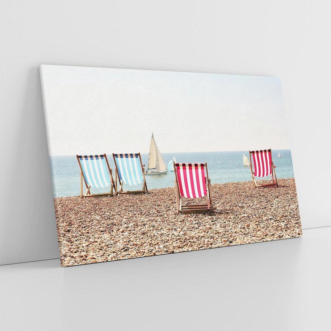 Obraz na płótnie 100x70 - Letnia retro bajka - fotografia, pasiaste leżaki