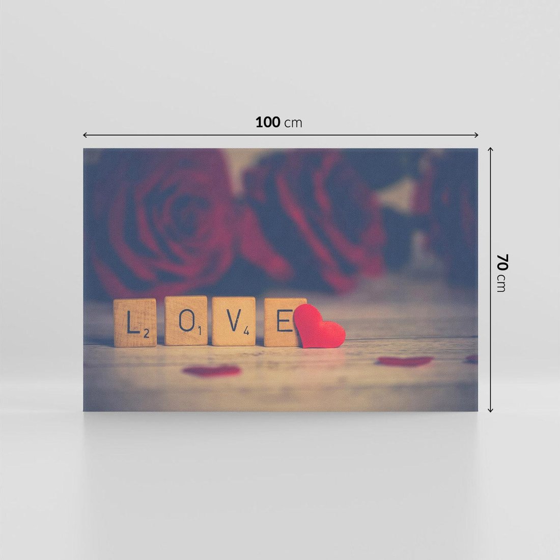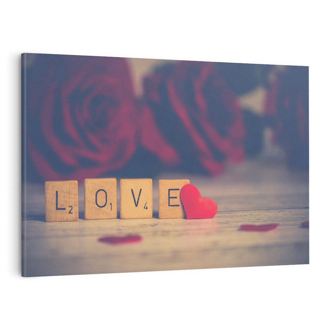 Przenieś się w świat uczuć dzięki temu uroczemu obrazowi przedstawiającemu słowo "Love". Kreatywna kompozycja, serce i wyraziste kolory tworzą wyjątkową aurę. Ten obraz dodaje romantyzmu i pozytywnej energii, idealny dla miłośników wyrazistych symboli miłości i emocjonalnych akcentów w aranżacji wnętrza.