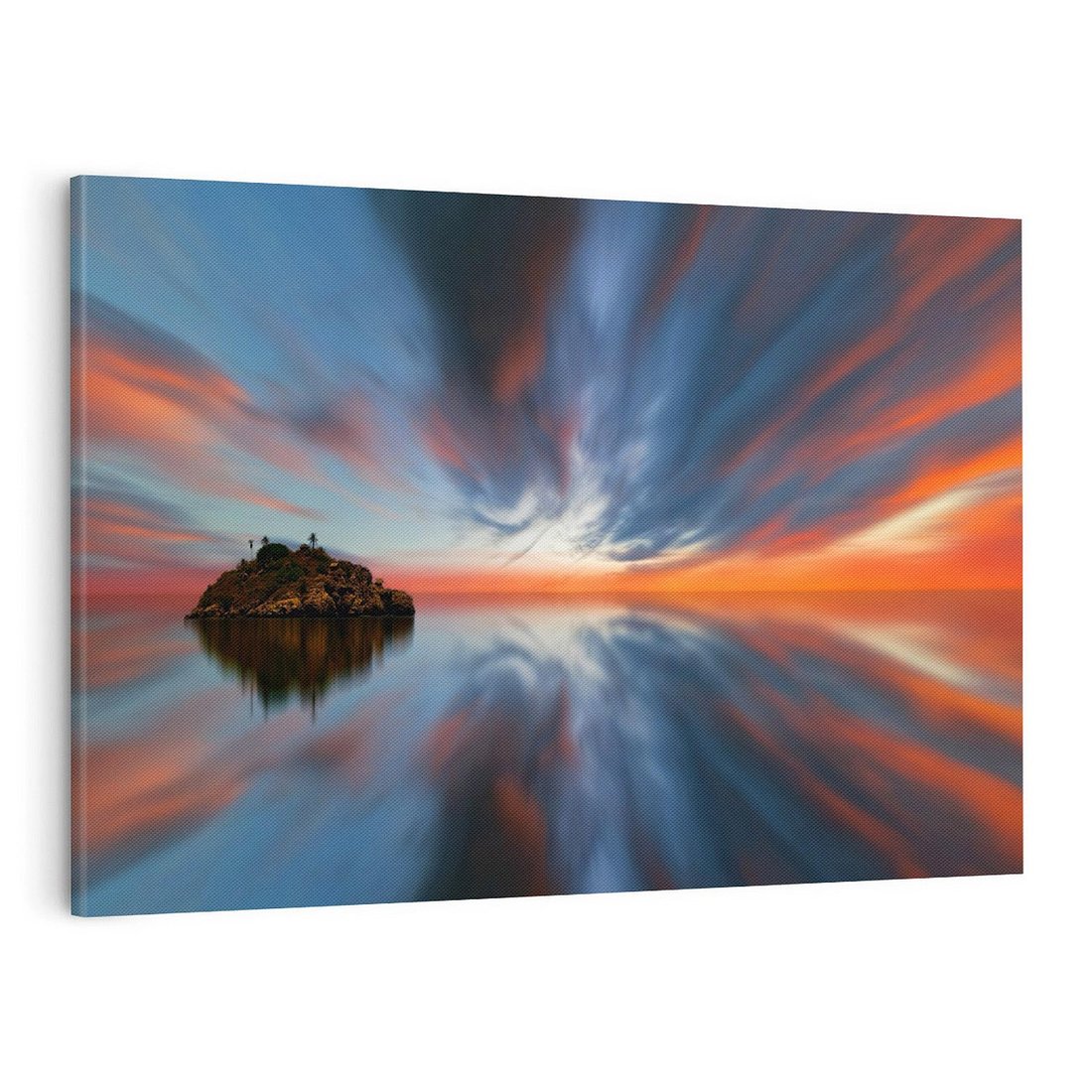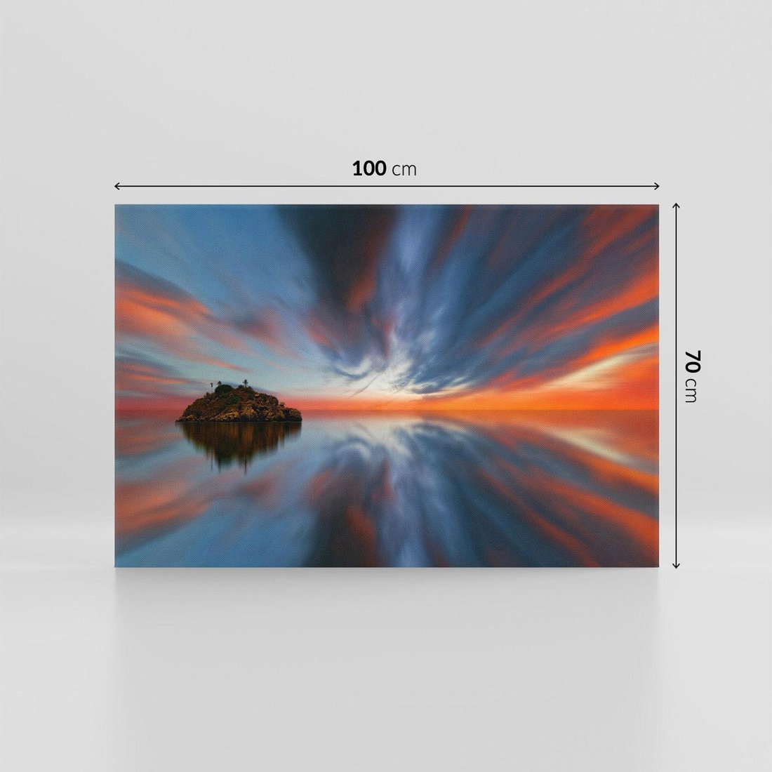 Ożyw swoje wnętrze tym malowniczym obrazem przedstawiającym morze i wyspę. Błękitna woda, odległe horyzonty i sielska atmosfera tworzą spokojną aurę. Ten obraz dodaje uczucia wakacyjnego relaksu i harmonii natury, idealny dla miłośników morskich krajobrazów i atmosfery wypoczynku w aranżacji wnętrza.