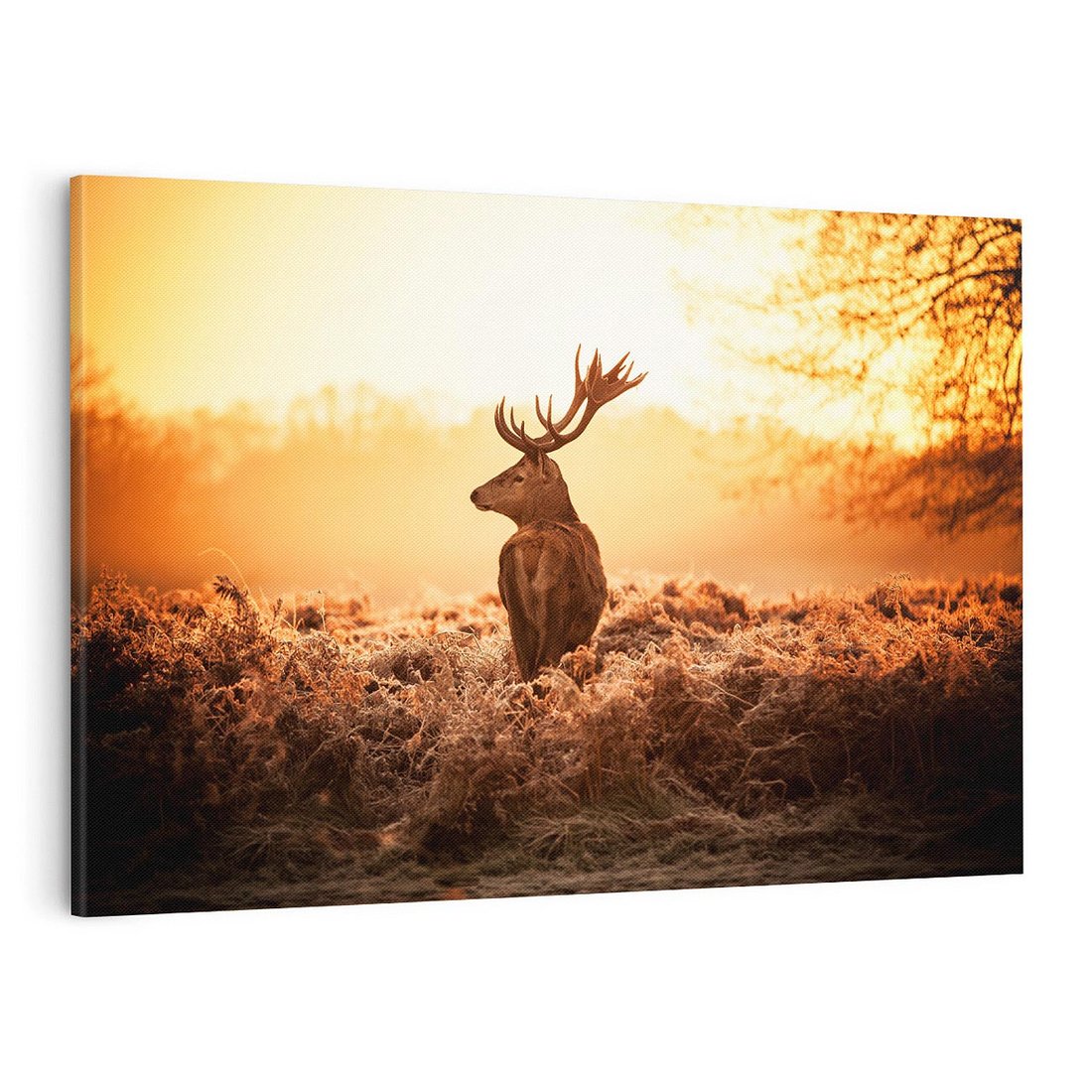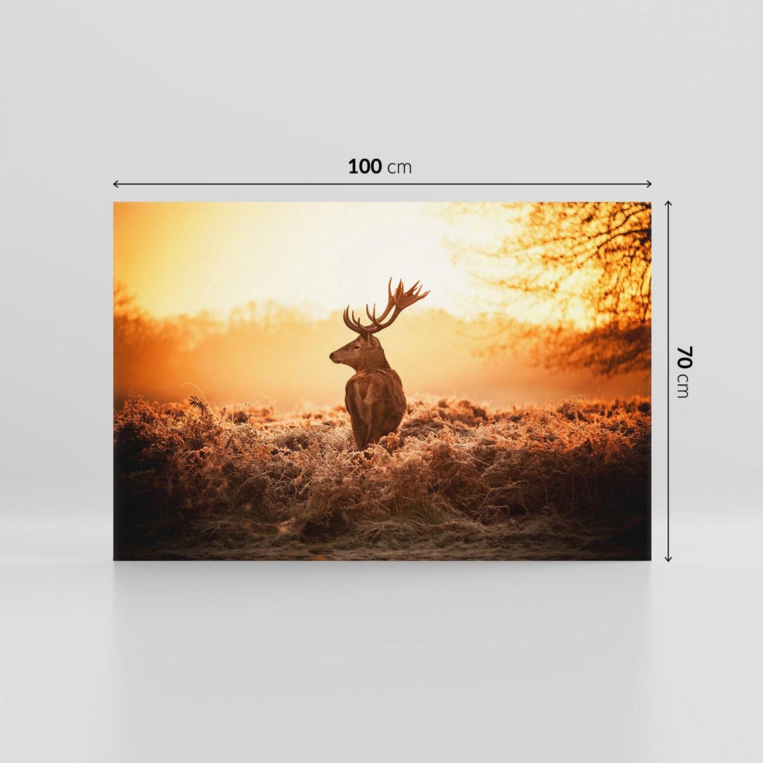 • Obraz na płótnie 100x70 - Magia jesiennego słońca: Jeleń w promieniach