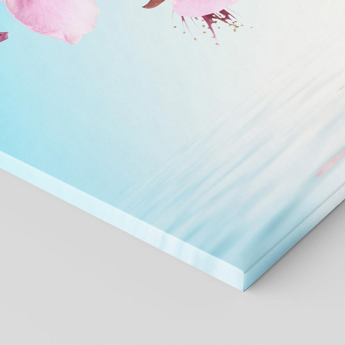 Obraz na płótnie przenosi nas w magiczny świat kwitnącej wiśni. Kwieciste gałęzie tworzą piękne kaskady różowych kwiatów, które unoszą się w powietrzu. Artysta umiejętnie oddaje ich delikatność i delikatny ruch, tworząc wizję natury w pełnym rozkwicie.