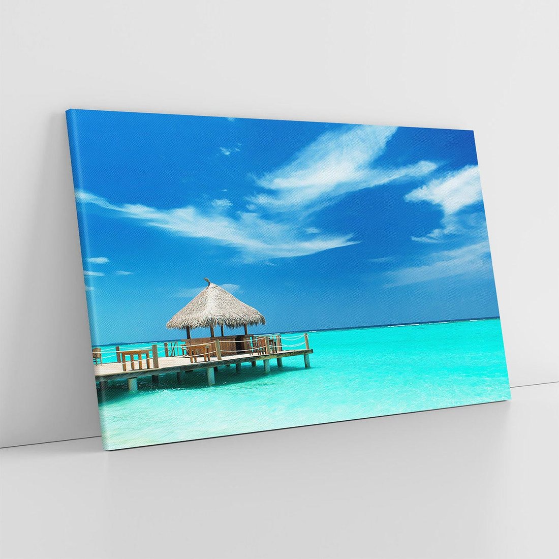 Przenieś się do rajskich tropików dzięki temu czarującemu obrazowi na płótnie. Malownicze molo nad pięknym oceanem tworzy atmosferę spokoju i wakacyjnego nastroju. Dodaj nutę egzotyki i relaksu do swojego wnętrza.