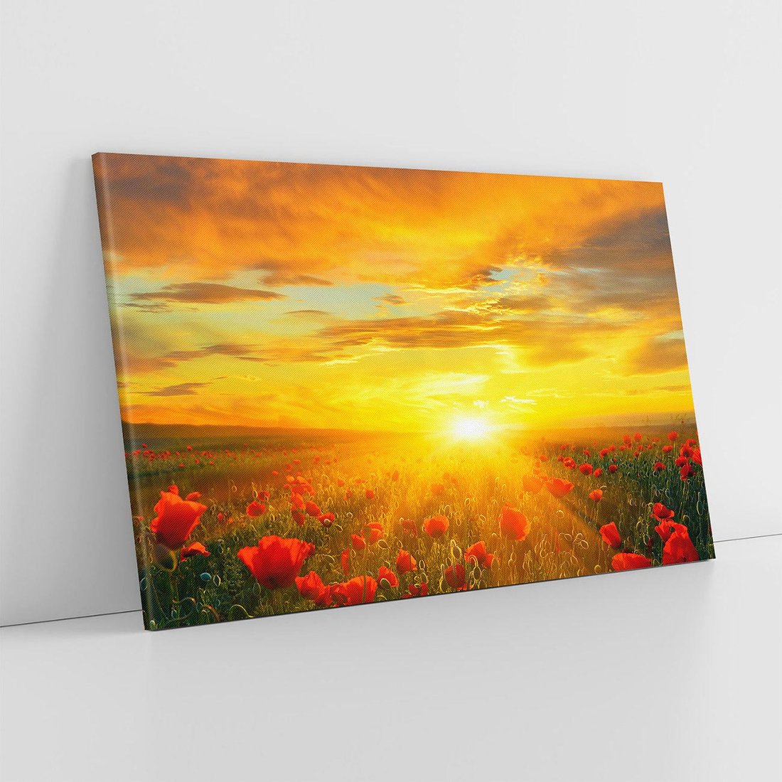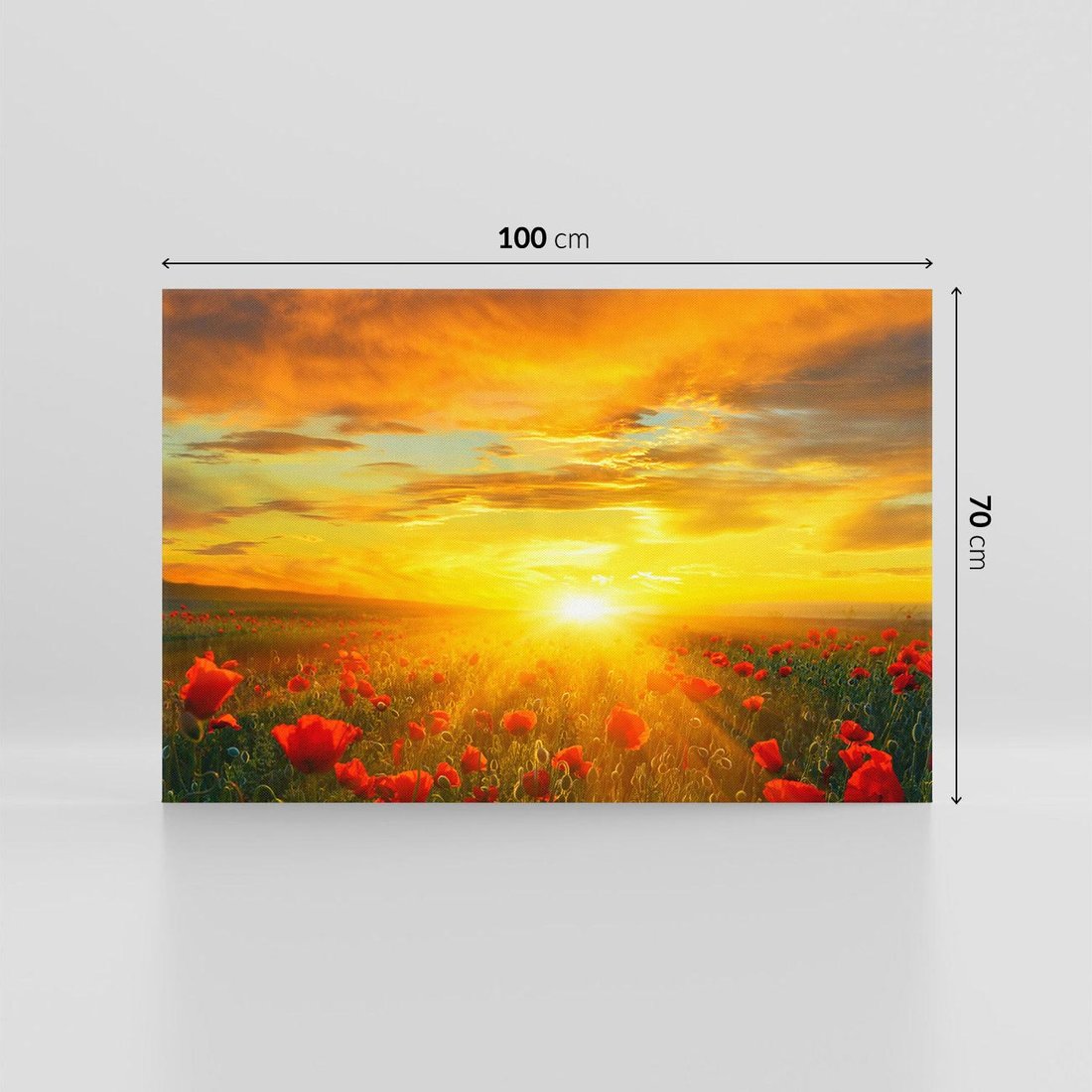 • Obraz na płótnie 100x70 - Magia zachodu słońca na łące z makami