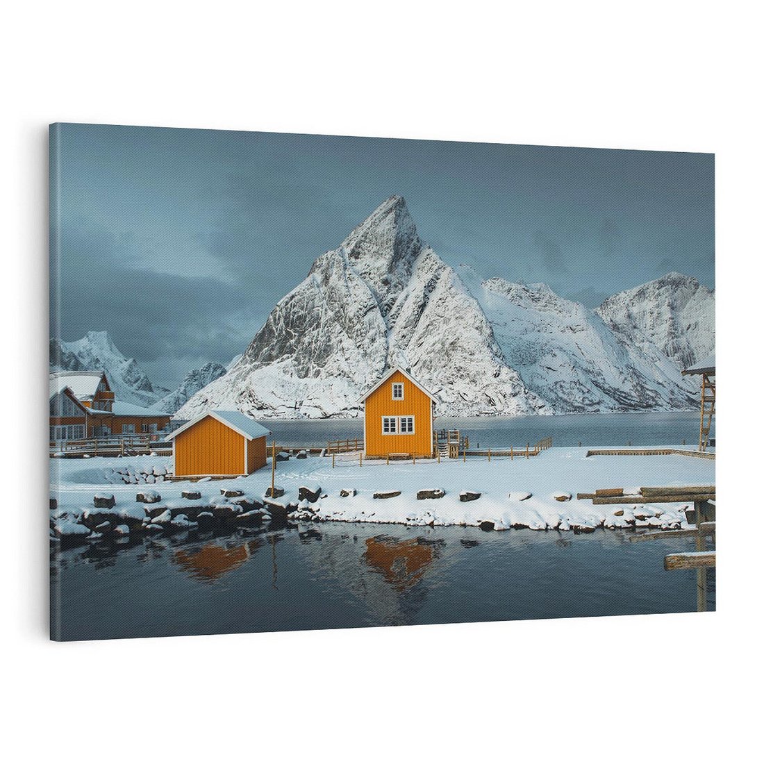 Stwórz przytulną przestrzeń w swoim wnętrzu za pomocą obrazu przedstawiającego skandynawskie domki. Ożyw swoje mieszkanie nutą prostoty, ciepła i minimalizmu.