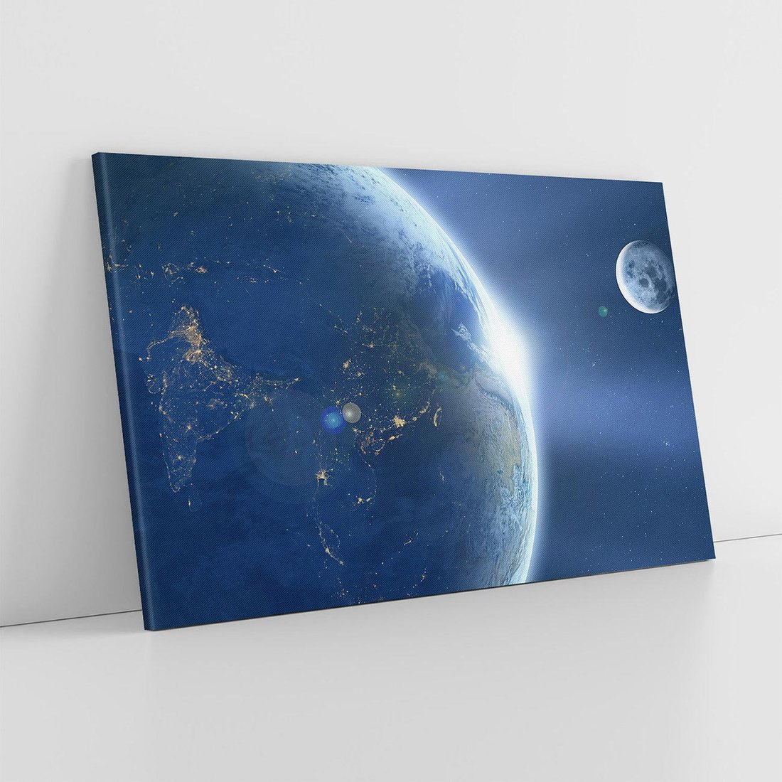 Przenieś się w mistyczną podróż dzięki temu uroczemu obrazowi przedstawiającemu księżyc i Ziemię. Delikatne światło, obecność księżyca i piękno naszej planety tworzą nastrojową aurę. Ten obraz dodaje harmonii i związku z naturą, idealny dla miłośników kosmicznych widoków i chcących wprowadzić do swojego wnętrza magiczną atmosferę spotkania dwóch światów.