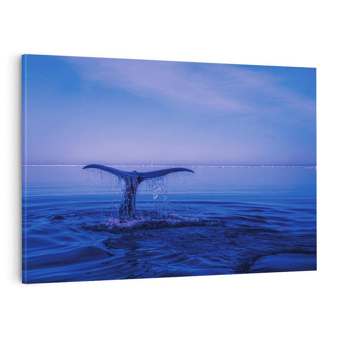 Ten malowniczy obraz ukazuje majestatycznego wieloryba unoszącego się nad szerokim oceanem. Przenieś się w świat tajemnic i siły tych wspaniałych morskich stworzeń. Dodaj nutę egzotyki i fascynacji przyrodą swojemu wnętrzu tym wyjątkowym dziełem sztuki.