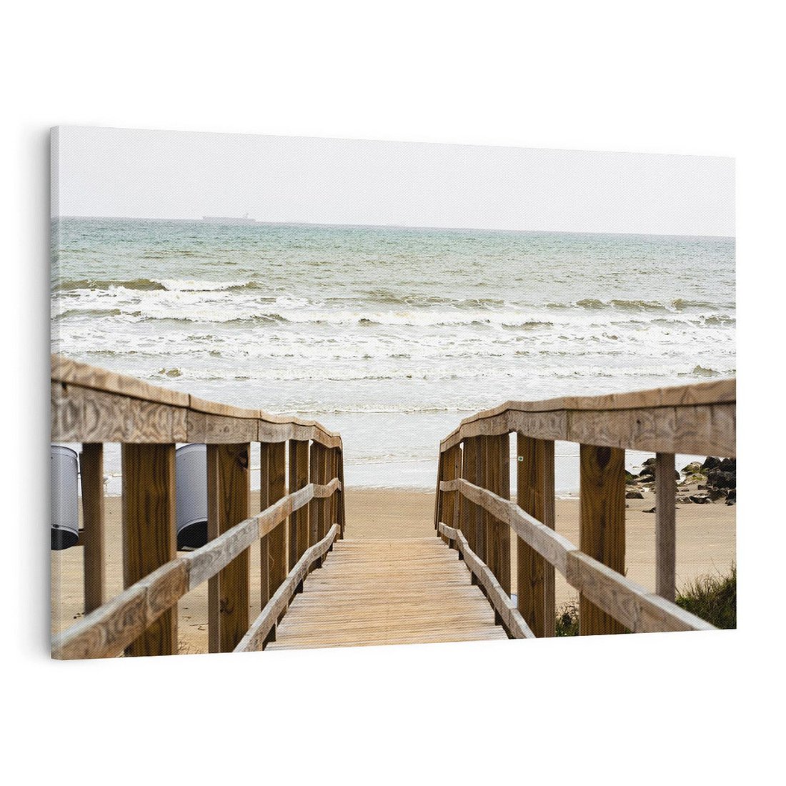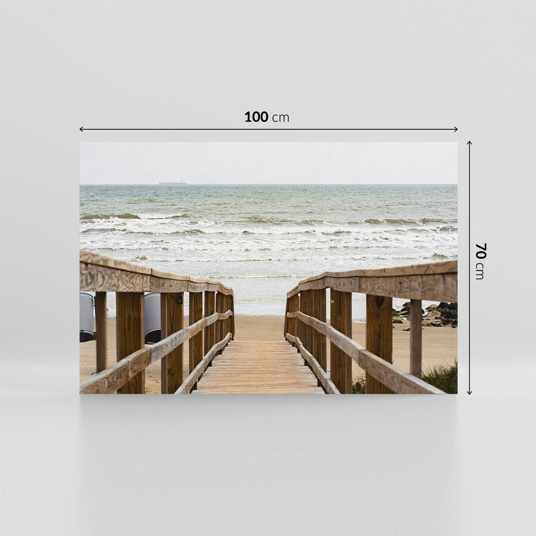 Ta malarska kompozycja przedstawia widok na morze i drewniany pomost, tworząc atmosferę spokoju i wakacyjnego relaksu. Jego kolorystyka i detale wprowadzą do wnętrza nutę morskiego klimatu i sielankowego odpoczynku. Doskonały wybór dla osób pragnących poczuć atmosferę plażowego raju.